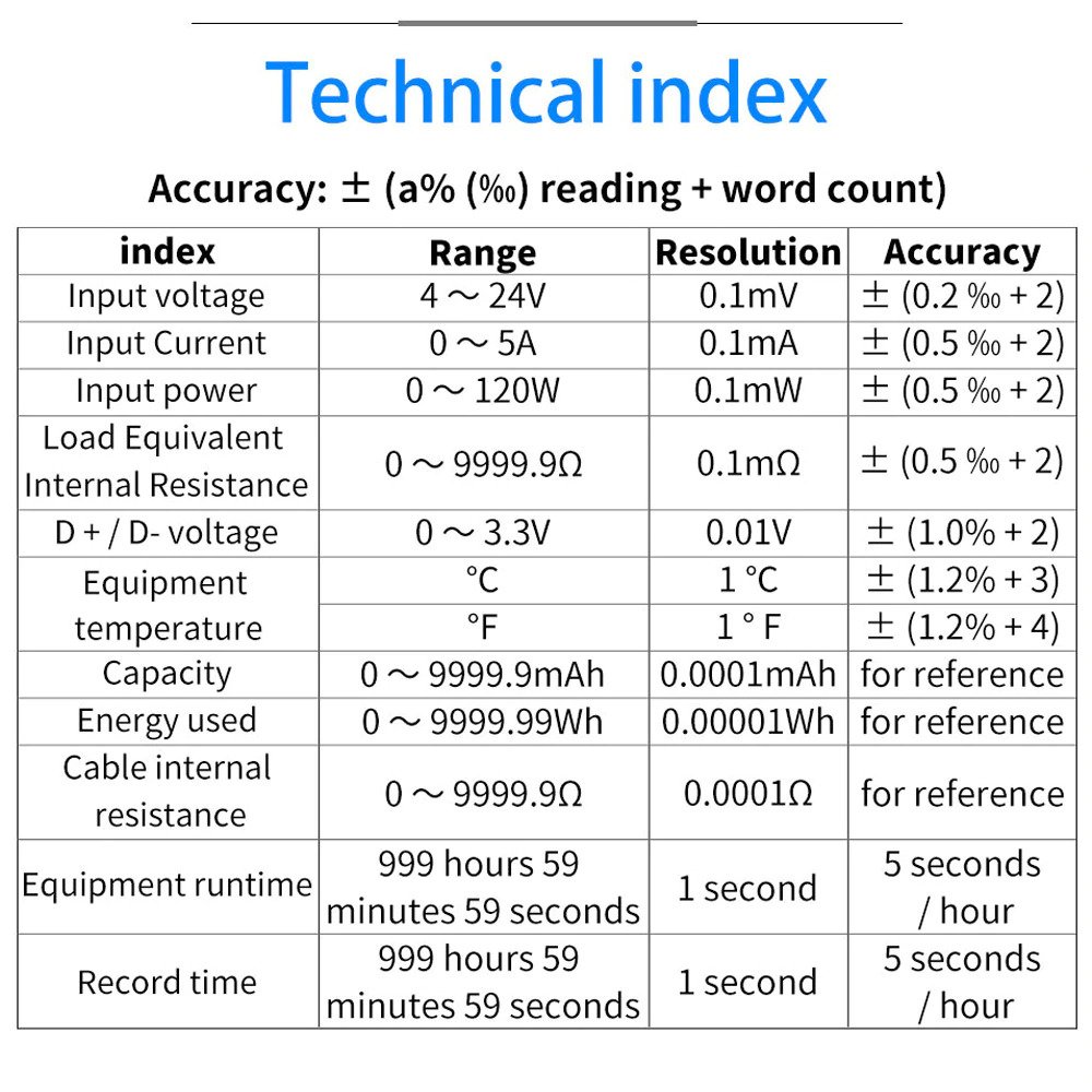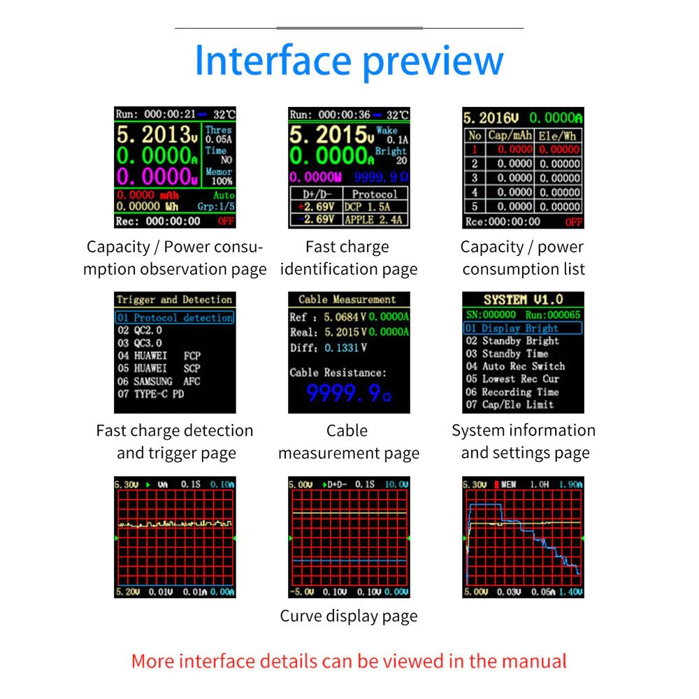 - Compatible with multiple interfaces: 1.44-inch TFT LCD HD display integrated USB-A, Micro-USB, Type-C interface, using external 16-bit ADC, PD protocol physical chip