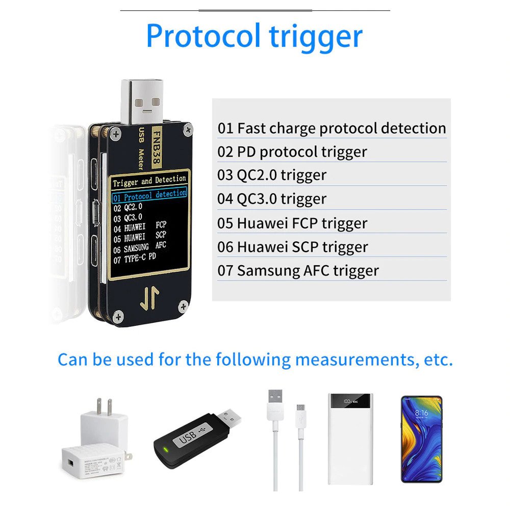 - It is a high-reliability, high-security USB voltage and current detection meter and a mobile communication terminal fast charge trigger meter