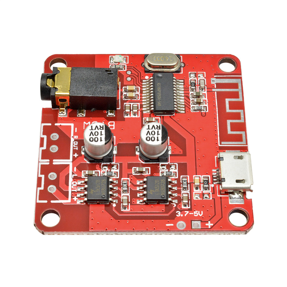 Support Bluetooth version 4.2, 3.7-5V power supply, support automatic connection back function, onboard stereo Class D power amplifier module, maximum output 5W+5W.
